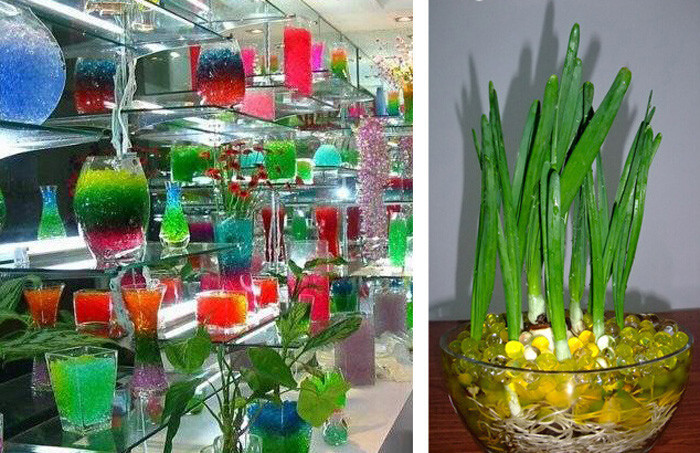 Во влажном состоянии они расширяются примерно до трети своего размера, удерживая воду. Гидрогелевые шарики спасают жизни при кратковременном выращивании в горшках, но не на длительный период времени.