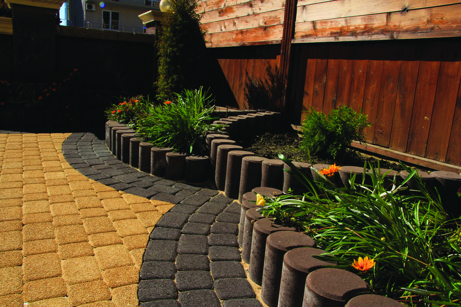 Преимущества: долговечность, устойчивость к механическому воздействию (проезд садовой техники), высокая эстетичность, большой выбор формы и текстуры.