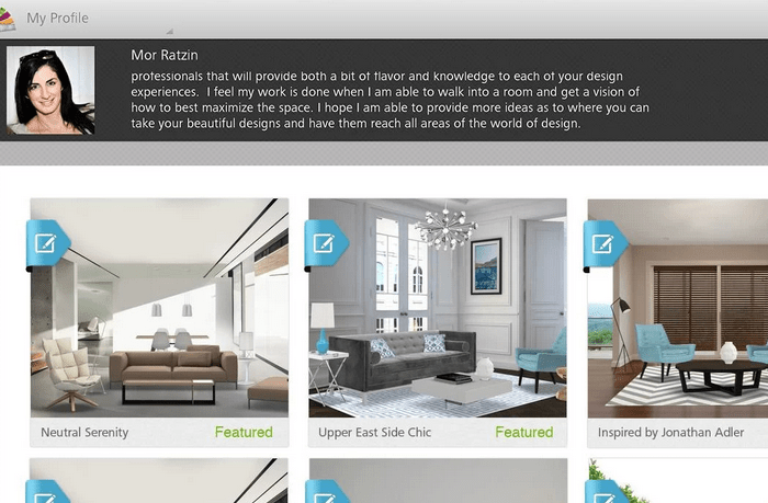 Проект включает в себя возможность не только проектирования помещений, но и имеет социальную составляющую — блог-каталог, в который каждый пользователь может опубликовать свои дизайны. А также выставлять свои работы на конкурс, получать за них награды, просмотры, лайки и комментарии от других участников. Каждый участник может зарегистрироваться в блоге, публиковать в нем свои работы, собирать лаки и подписчиков.