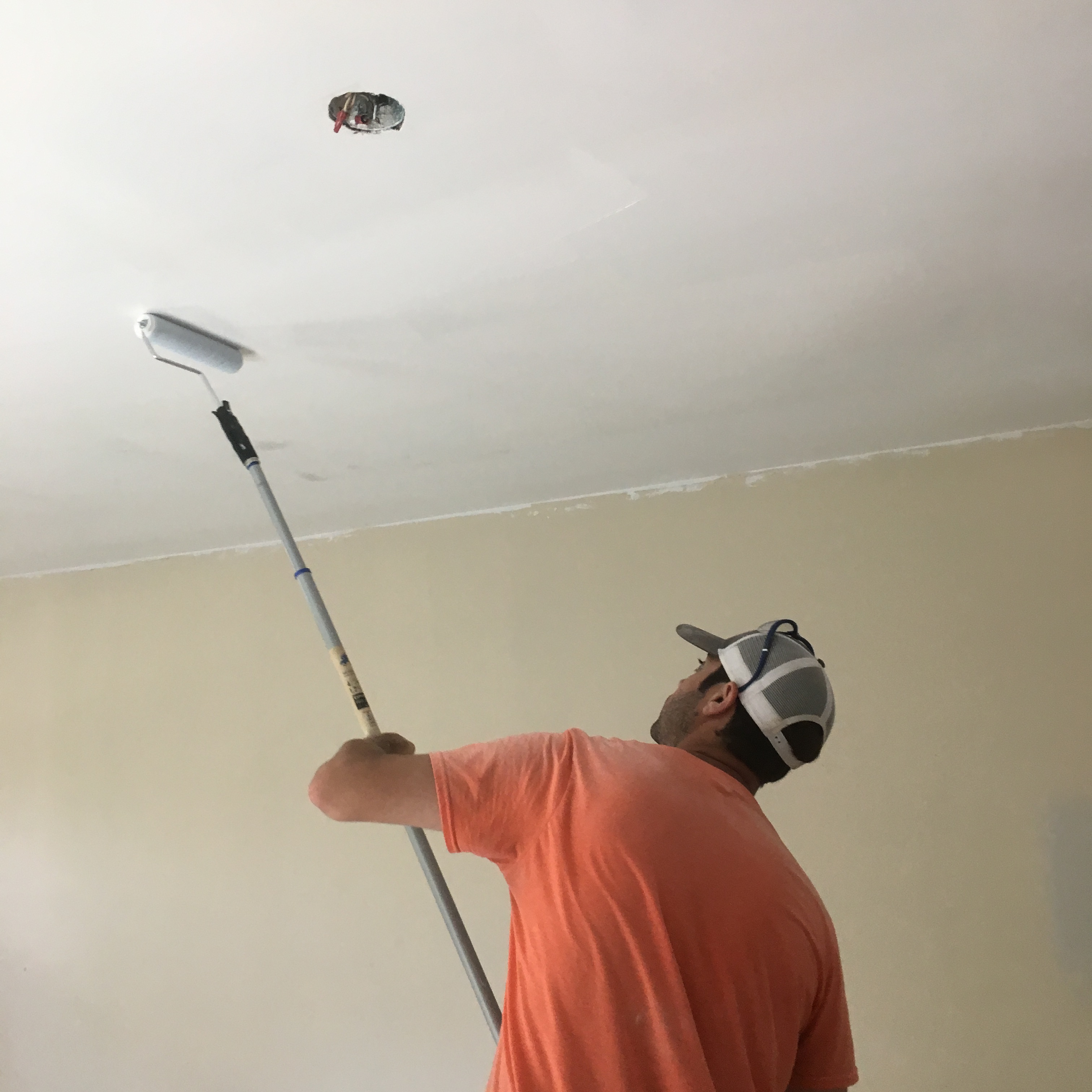 После того, как он закончит подготовку комнаты, Мэтт наконец может приступить к покраске потолка.