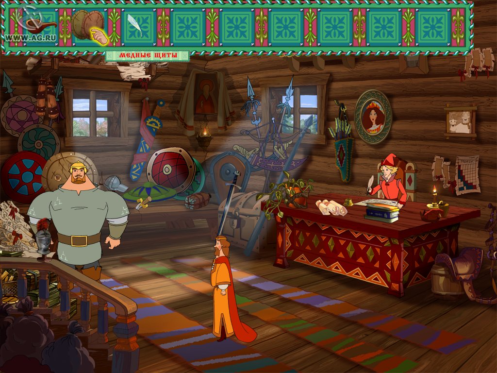 Имеются краткие введения на русском и английском языках к персонажам или историям, которые вы видите вокруг себя, на случай, если вы каким-то образом умудрились пропустить Бабу Ягу, вечно доброго идиота, удачливого Ивана, Василию Компенсаторно Чрезвычайно Компетентную, (Еще более совершенный) Царевна-лягушка, трехглавый дракон, грубые богатыри, все говорящие животные, с которыми вы можете справиться, или сумасшедший подводный король.