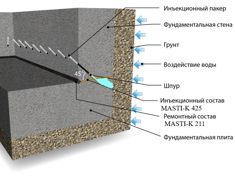 4 | Инъекционная | Подвалы, подземные парковки, стоянки, магистрали. канализационные коммуникации. |